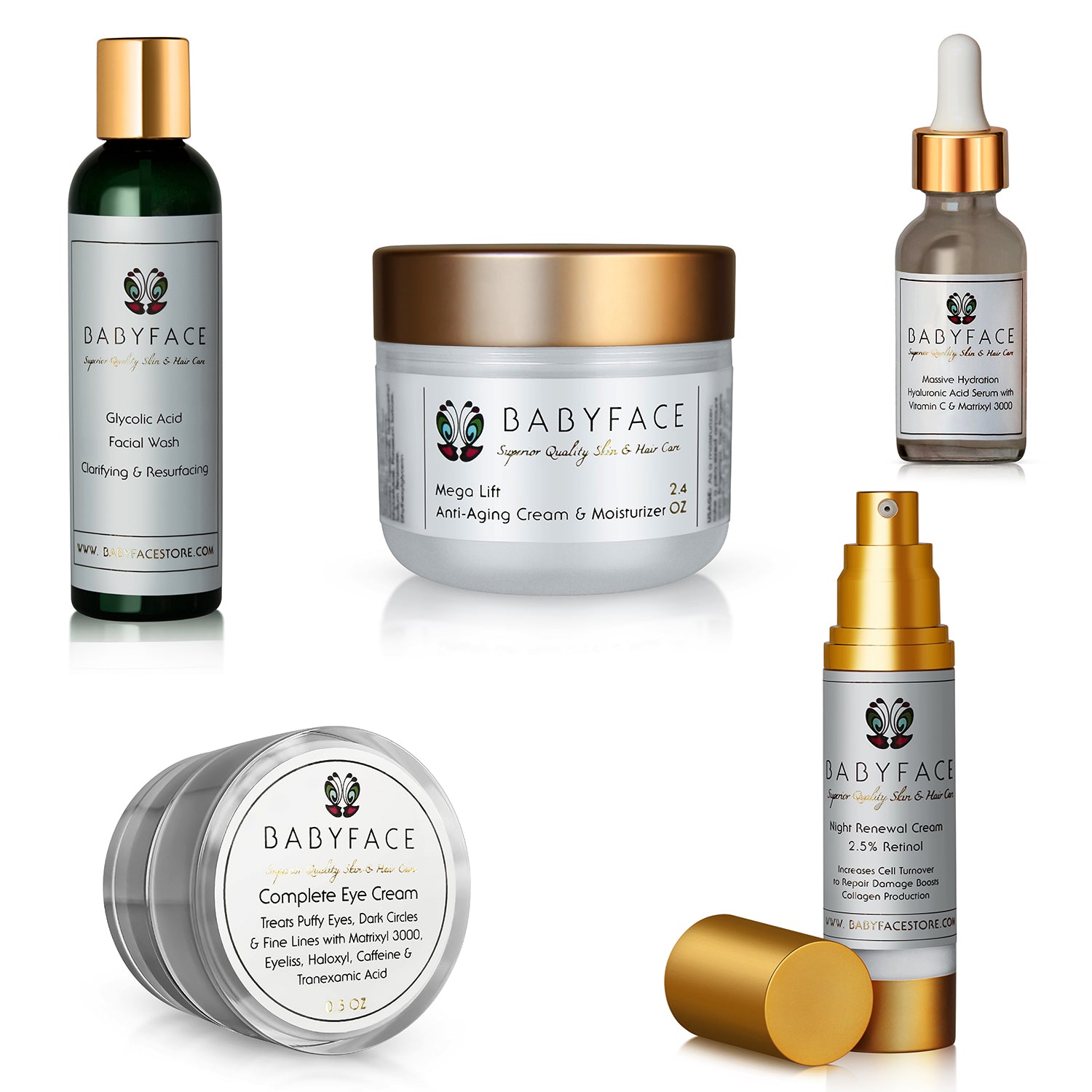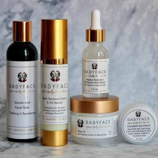 This is our deluxe anti-aging set, complete with everything you need to transform aging skin. These are some of our client and staff favorites, and are what we call our "classics." Potent and results driven, this set compares to high-end department store skin care that sells for hundreds more.