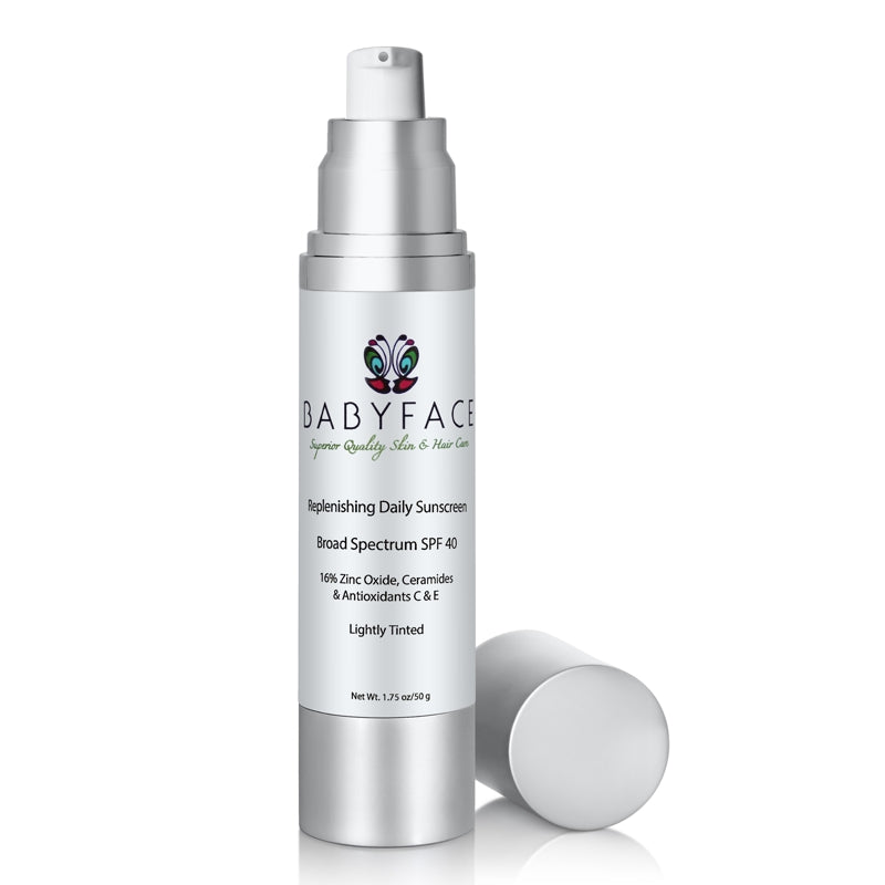 Formulated with Zinc Oxide, Ceramides, and powerful antioxidants tetrahexyldecyl ascorbate (vitamin C) and vitamin E. Zinc Oxide protects against UV damage and Ceramides help restore the lipid layer. Babyface's Daily Replenishing sunscreen helps prevent future UV damage and aids in the repair of existing damage resulting in long lasting moisturization.