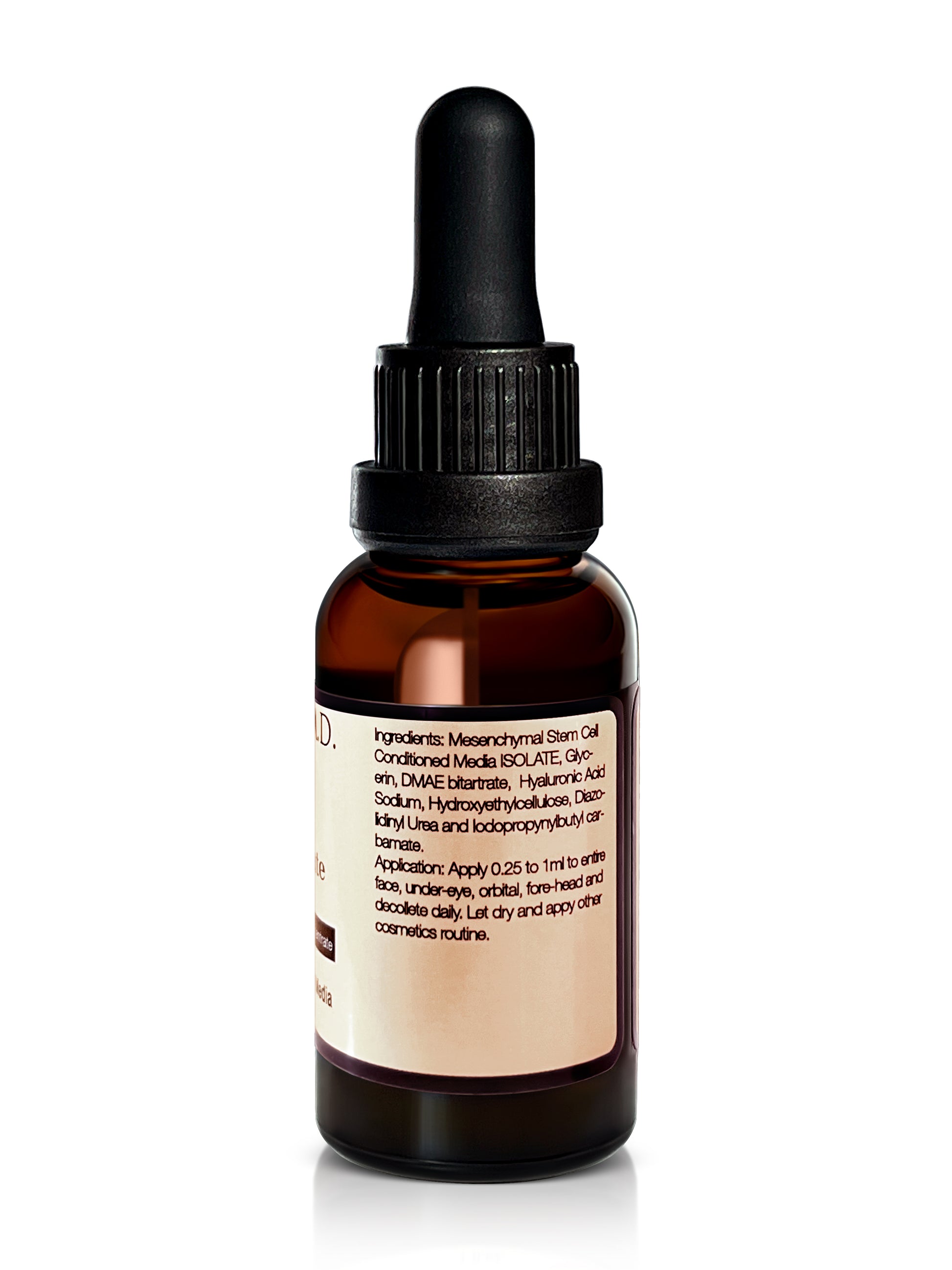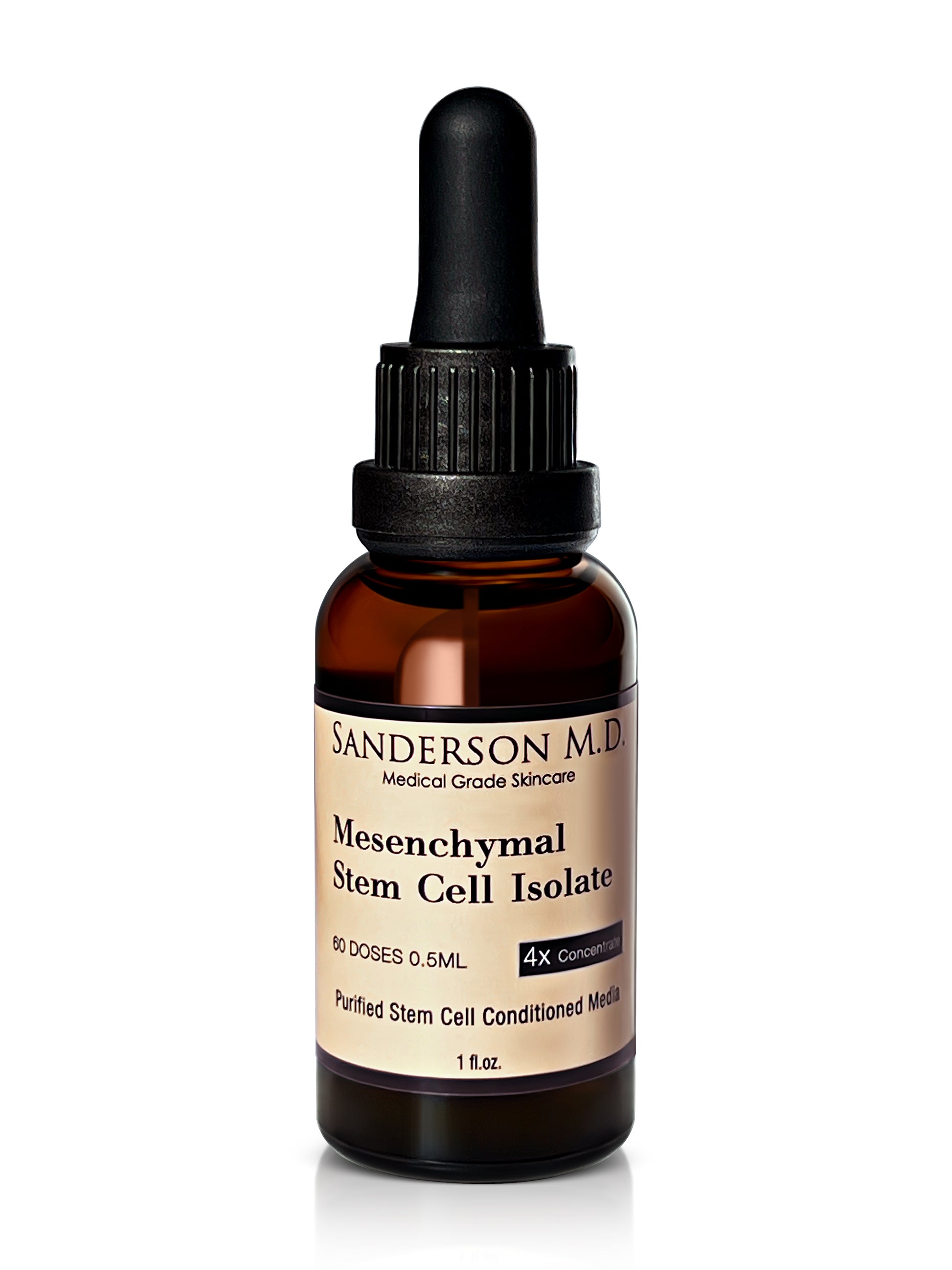 Sanderson MD (4X concentrated) Human Mesenchymal Stem Cell-Conditioned Medium (MSC-CdM) is ethically produced using donated adult bone marrow stem cells. It contains thousands of growth factors, cytokines, and peptides. Protein-rich mesenchymal stem cells (MSCs) naturally occur in the human body, so in addition to this serums's exceptional potency, it is well received by the skin.